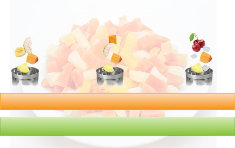 Formula 2 : Pineapple 40%, Red+Yellow Papaya 40%, and Nata De Coco Guava 19%, and Cherry halves 1%