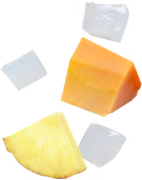 Formula 1 : Pineapple 45%, Red + Yellow Papaya 40%, and Nata De Coco Guava 15%